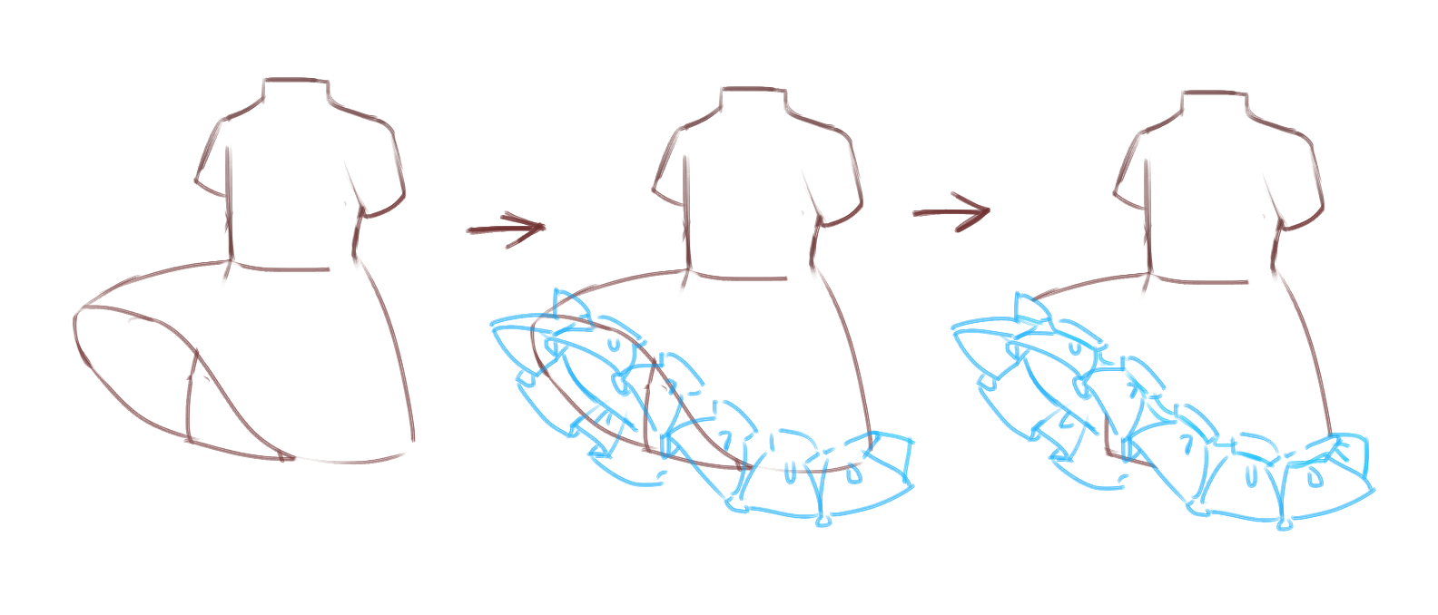 How to draw new arrivals frills on a dress